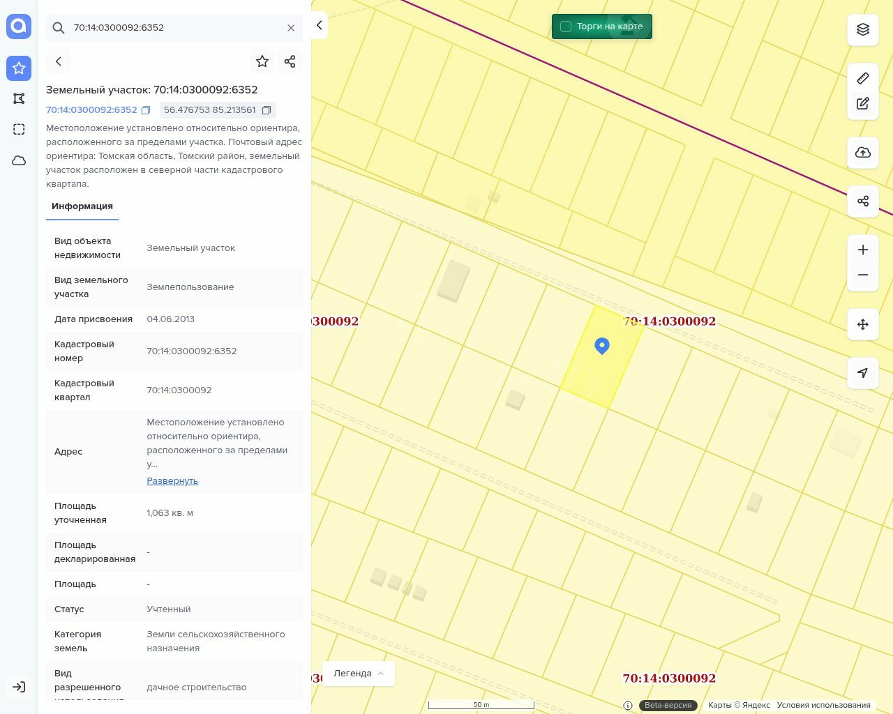 Земельный участок, кадастровый номер 70:14:0300092:6352, общей площадью 1063 кв.м. Категория земель Земли сельскохозяйственного назначения. Вид разрешенного использования: дачное строительство