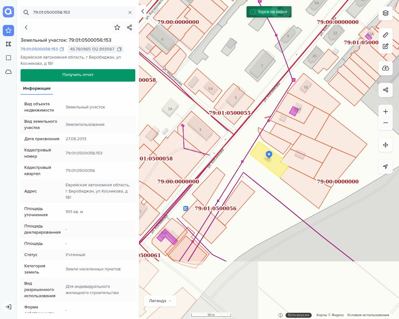 Земельный участок, площадь: 951 кв.м.,кадастровый номер: 79:01:0500056:153, Категория земель: Земли населенных пунктов, Вид разрешенного использования: Для индивидуального жилищного строительства